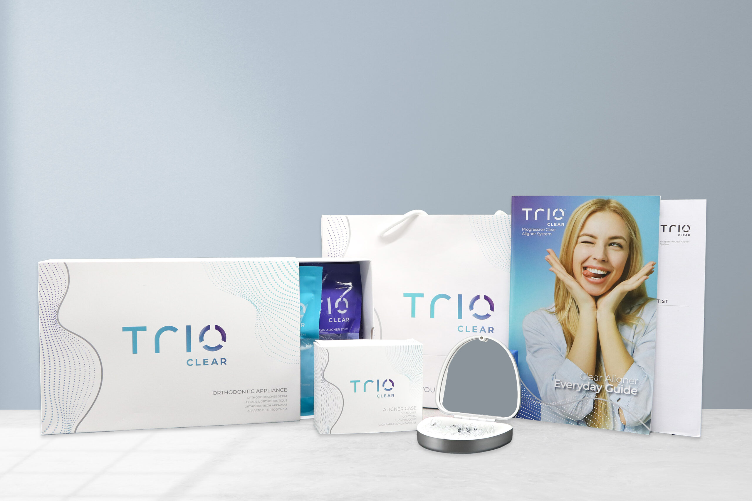 TrioClear са прозрачни алайнери, които се използват за постепенно и прецизно подреждане на зъбите. Те са направени от висококачествени материали и имат трислойна структура, която осигурява оптимална комбинация от гъвкавост и здравина.